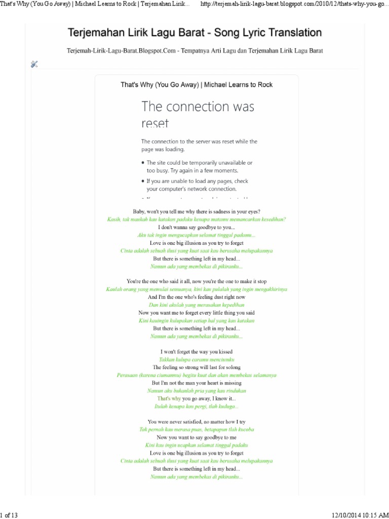 | Judul Surah: Terjemahan Lirik Lagu Barat Lirik Lagu Mltr That Why You Go |